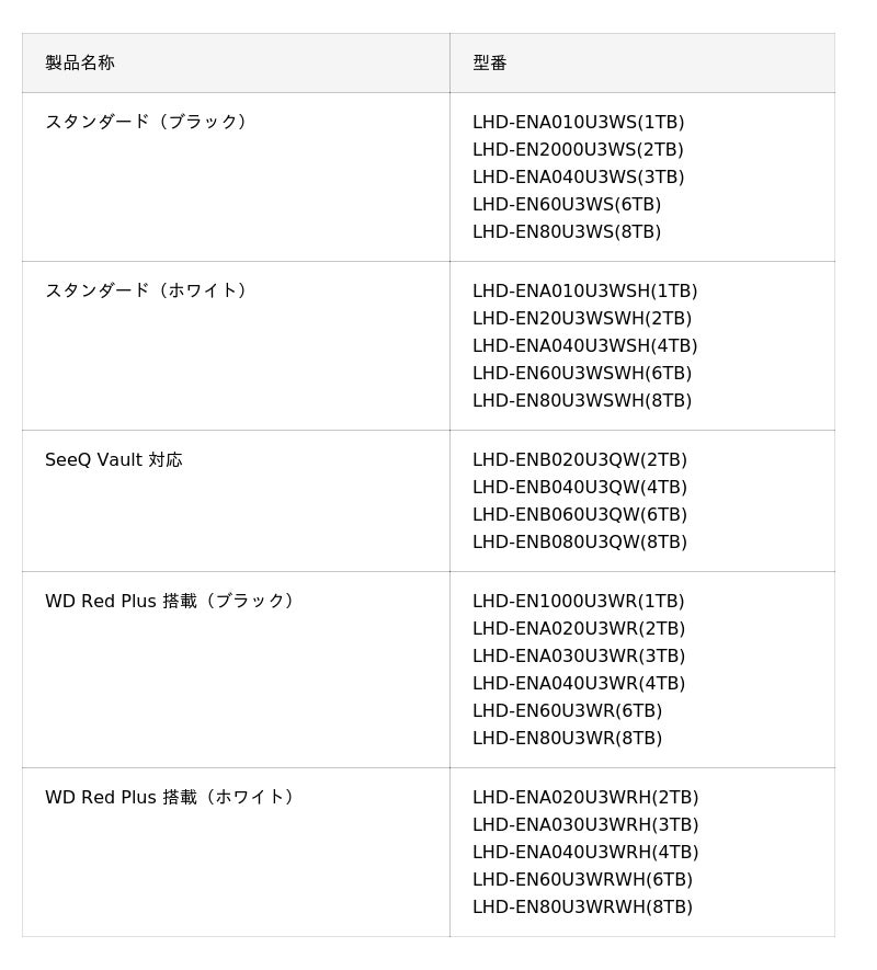 定番のスタンダードモデルやWD Red Plus搭載モデルに、各容量でホワイトカラーを追加。SeeQVault対応モデルや東芝タイムシフトマシン対応モデルも引き続き出品しています。