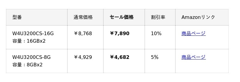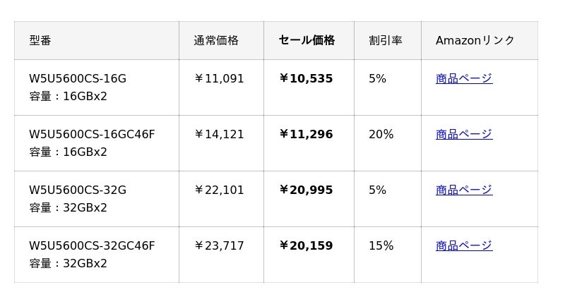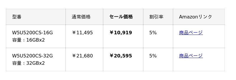 AMD Ryzenシリーズや、CFD販売のグラフェン銅箔ヒートシンク搭載DDR5メモリなど24製品が大変お得になるセールとなっています。