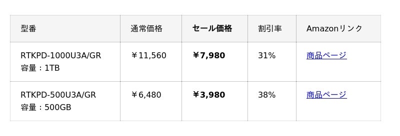 Realtek (リアルテック) RTKPD シリーズ スティック型 USB接続 外付けSSD