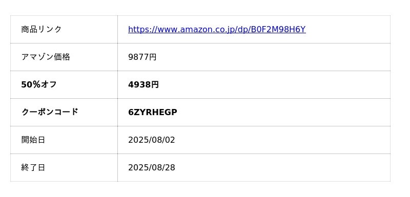 クーポンコード:X7P9OBD2