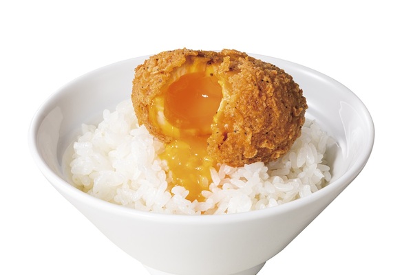 そんなからやまでレギュラー販売されるカリッとたまご(店内価格165円)は、ニンニクの効いた濃い目のタレ漬け込んだ半熟たまごに、からやま特製のからあげ粉をまぶしてカリッと揚げた一品。白米にのせて箸で割ると、からやま流の「たまごかけごはん」として楽しめるんだとか。テイクアウトでも購入できます。