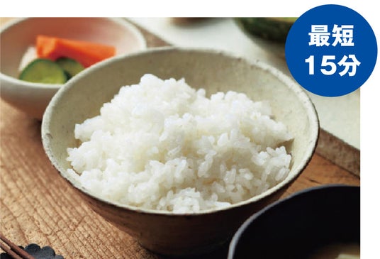 あらかじめ吸水(2時間以上)させた白米(無洗米)を、最短約15分で炊くことができます。※白米をあらかじめ吸水させることで「早炊き」よりも炊飯時間が短くなります。