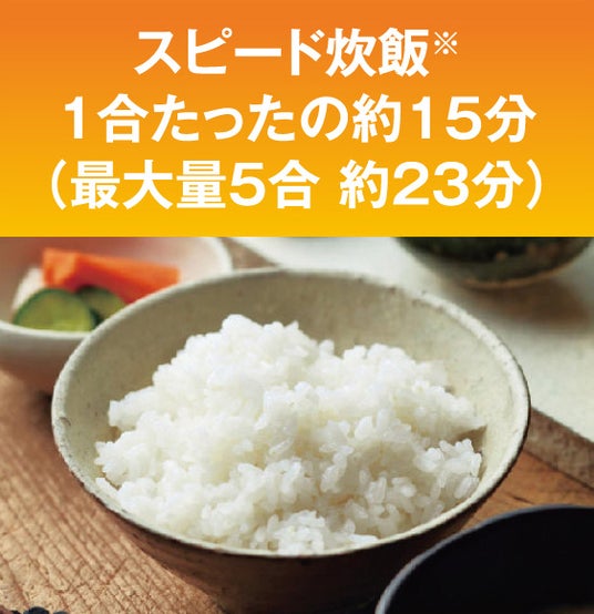 ※約15分炊飯は吸水米1合炊飯時。水の温度や外気温により変動の可能性があります。