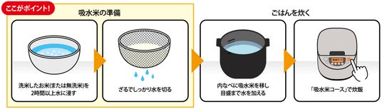 事前吸水させた白米を使って、短時間でごはんを炊飯。