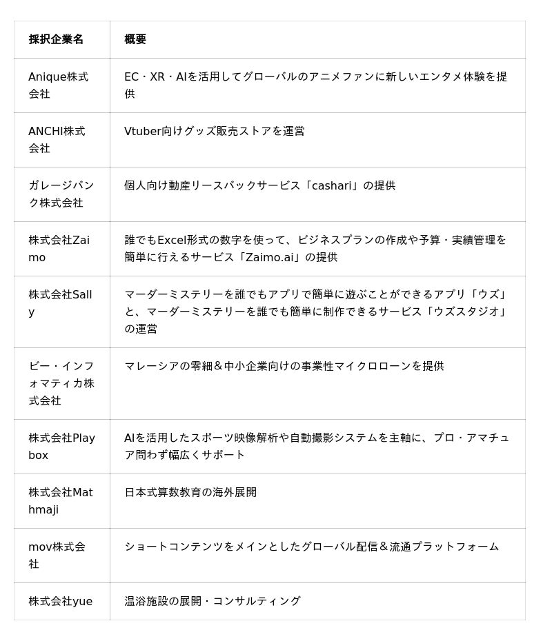 今回の視察には、「Tokyo ASEAN Bridge」に採択されたシード~シリーズAフェーズのスタートアップ10社が参加。Fintech、Edtech、エンタメ、スポーツ、ペットなど多様な領域の企業が集まりました。