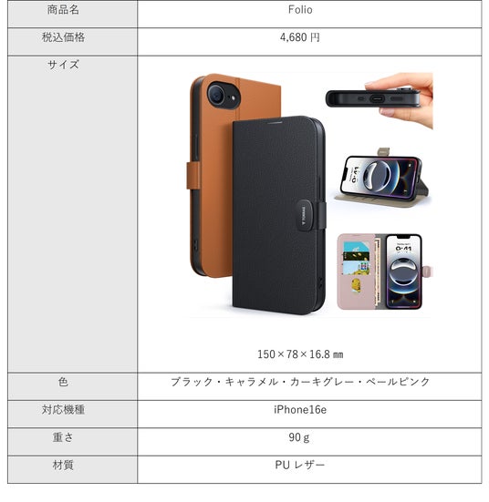 今回発売する「Folio」は、日本のお客様のニーズに応えて開発した、ブランド初の手帳型iPhoneケースです。手触りの良い上品なPUレザーを使用し、シンプルで高級感あるデザインに仕上げました。約30°~90°で角度調整ができるスタンド機能も備え、高い実用性と磨き抜かれたデザインが調和する、日本限定モデルです。