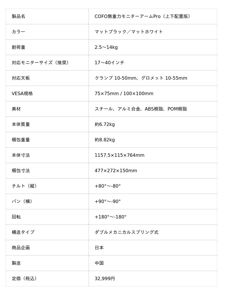 【最新作】モニター位置を、その日の気分でスイスイ変更。「COFO無重力モニターアームPro(上下配置版)」が7月9日(水)よりMakuakeにて正式ローンチ