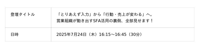 本セッションでは、SFAの真価を引き出す「行動設計 × 仕組み化」による営業改革の実践法を、“日本企業による日本企業のためのSFA”として開発された国産SFA「SALES GO SFA」を提供する私たちだからこそ語れる視点でお届けします。