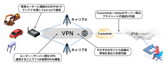 自動車、建設、ロボティクスなどで加速する、遠隔化・自動化、デジタルツイン実現において、機体をクラウドに常時接続することでリアルタイムな遠隔監視、操作などの実装が必須となりつつあります。こうした背景のもと、intdashは多くのお客様においてエッジ~クラウド間での動画を含むマルチモーダルデータのリアルタイムストリーミング目的で活用いただいています。しかし、移動体の遠隔化において主に利用されるモバイル回線による通信環境では、通信キャリアのカバーエリアに依存するため、移動しながらの通信は帯域不足や通信の断絶に陥りがちです。本サービスは、モビリティからのより高精細な動画・センサーデータを可能な限り安定的にリアルタイムに活用したいといった多くのintdashユーザーのご要望にお応えするサービスとなります。
