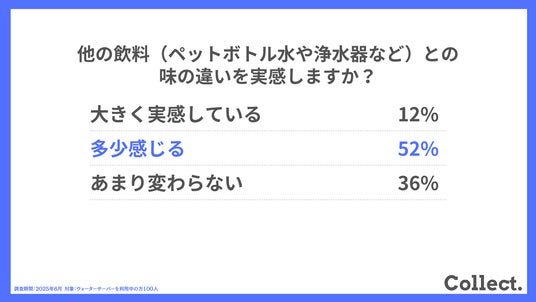他の飲料(ペットボトル水や浄水器など)との味の違いを実感しますか?