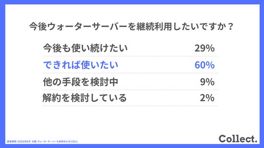 本アンケート結果や画像をご利用いただく際は、引用元として「Collect.(コレクト)URL(https://www.dm-s.co.jp/collect/water-server/)」へのリンク設置をお願いいたします。