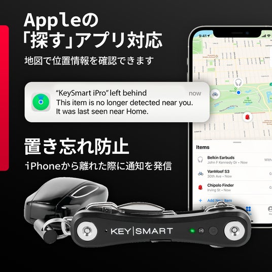 Appleの「探す」アプリ対応、iPhoneから離れると自動通知!鍵・財布の盗難紛失を防ぐ! 「SmartCard + KeySmart iPro」