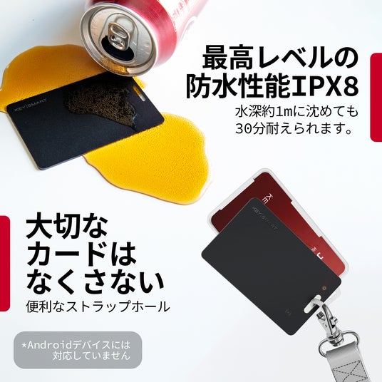 カードタイプは同等品最強のIPX8対応。約1mの水深に30分完全に沈めても使用できます。