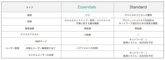 ■Omada Central Essentials(無償版)VS Standard(有償版)*3