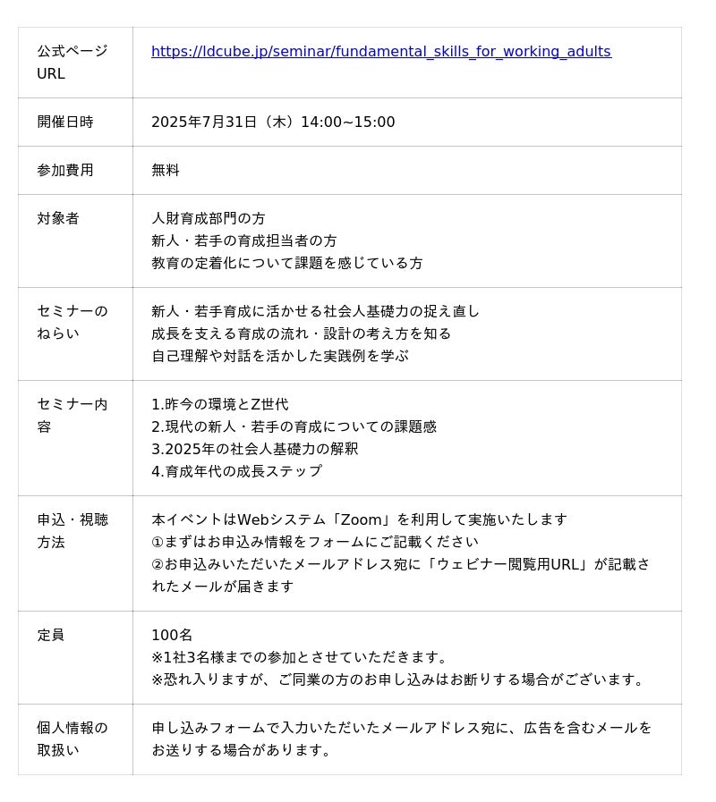 「新人・若手が“動き・創り・つながる”人財に育つために 社会人基礎力を再構築する育成デザインとは」無料ウェビナーを開催(7月31日14:00~15:00)|株式会社LDcube