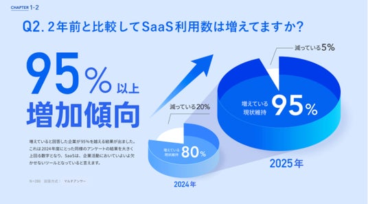■2年前と比較してSaaS利用数は95%が増加傾向に