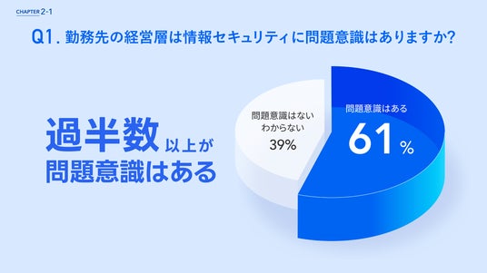 - 経営層の61%が情報セキュリティに強い問題意識を持っている