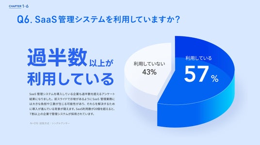 - SaaS利用企業の半数以上が「SaaS管理システム」を導入。91%が導入効果を実感