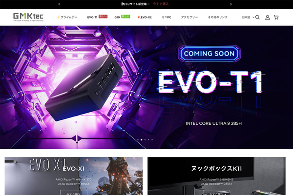 GMKtecのウェブサイト。日本語も用意され、直接購入できる