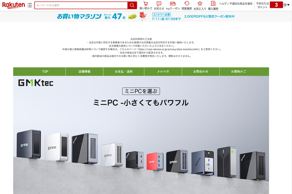 GMKtecはAmaoznと楽天市場での直販(GMKtec-JP)のほかに、国内販売代理店のリンクスインターナショナル扱いのモデルがヨドバシカメラなどの量販店に並んでいる。