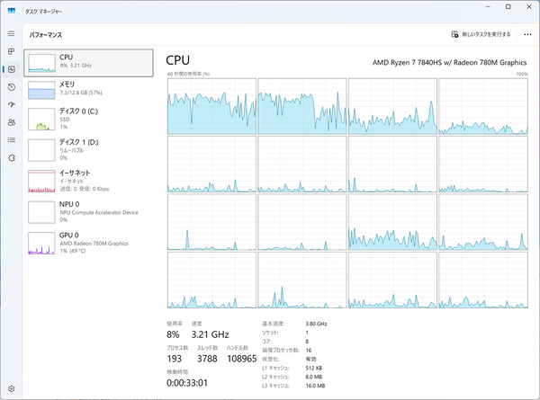 そのうえ、プロセッサーが内蔵しているグラフィック(iGPU)機能は、内蔵としては高い性能を持っている「Radeon 780M」を採用しているのも、購入を後押ししたポイントだ。