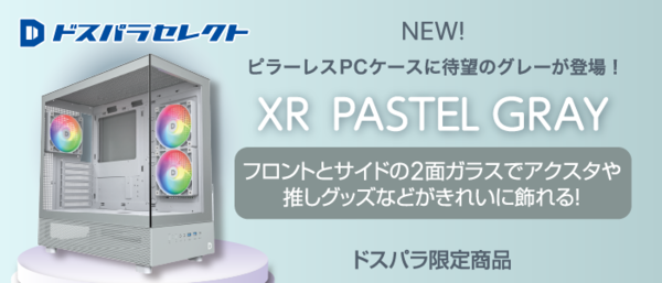 サードウェーブは7月10日、ドスパラセレクトシリーズから新たにパステルグレーのピラーレスPCケース「XR PASTEL GRAY(エックスアール パステル グレー)」を販売開始した。価格は7,980円で、全国のドスパラ店舗および通販サイトで購入可能だ。