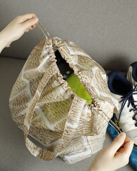 エコバッグは、耐荷重5kg、肩かけOK。まちつきなので、日々の買い物に重宝できる仕様。また、スポーツジムや部活動、温泉施設での着替えなどを入れてきゅっと口をしぼれば、バッグの中身を見せたくない場面でも安心して使えるとしている。