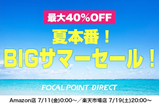 フォーカルポイント株式会社(本社:東京都港区、代表取締役 恩田英樹 以下フォーカルポイント)は、直営オンラインショップ フォーカルポイント・ダイレクトAmazon店、楽天市場店にて最大40%OFFの夏本番!BIGサマーセール!を開催いたします。