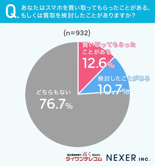 合計で23.3%の方が「スマホを買い取ってもらったことがある・もしくは検討したことがある」と回答しています。