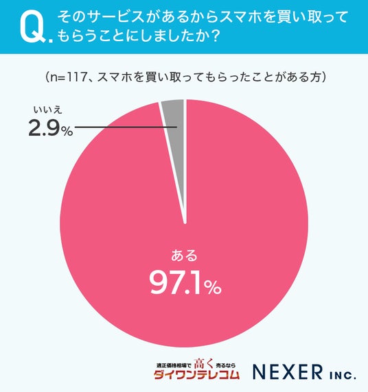 97.1%と、ほとんどの方が「そのサービスがあるからスマホを買い取ってもらった」と回答しています。