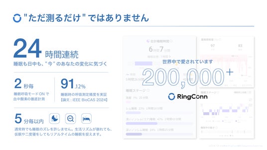 このたび、RingConnシリーズが全世界で累計販売数20万突破という節目を迎えられたことを、大変嬉しく思っております。今年2月から日本展開の約半年で世界で6万人を超える販売実績を達成し、多くのお客様にご支持いただけたことは、私たちにとって大きな誇りです。RingConnは、装着感などハードウェア面だけでなく、高精度な測定データといった科学的裏付けのある“中身”こそが、選ばれる理由となっています。今後も、日本の皆様にとっての“気づけるヘルスケアパートナー”としての価値をさらに高め、世界中の人々の健康意識とウェルビーイング向上に貢献できるよう尽力してまいります。