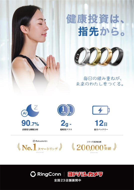 次世代型製品を展開する株式会社Acalie(本社:愛知県名古屋市、代表取締役:中友 孟涛、以下 Acalie)は、次世代スマートリング「RingConn(リンコン)」の日本TOPディストリビューターとして、2025年7月14日現在時点でRingConnがシリーズ累計販売数 20万個突破 を達成したことをお知らせいたします。日本だけにとどまらず、全世界で支持されるヘルスケアウェアラブルとして、信頼と実績に裏打ちされた成長を続けています。