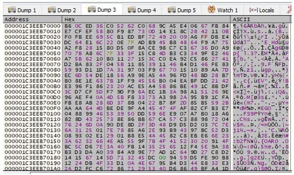 分析の結果、このマルウェアにはアドレス0x1C3EEB7000にあるグローバル変数データ(サイズは0x5A000バイト)も必要であることがわかりました。