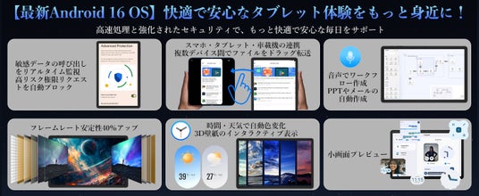 Android 16では操作性がより洗練され、インターフェースとメディア視聴体験が向上したほか、テキストの視認性も改善されています。これにより、11インチFHDディスプレイでの長時間の読書やウェブブラウジング、文章作成なども快適に行えるようになりました。