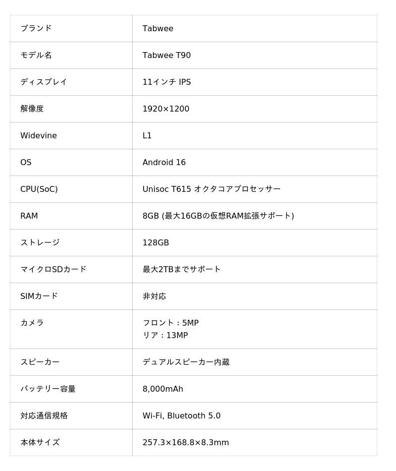 最新Android 16搭載タブレット「Tabwee T90」を税込16,499円の特価で購入可能!セールは7/29まで