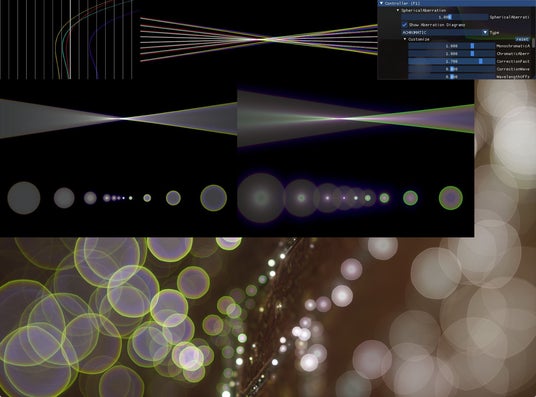 「YEBIS 4」は、近年のGPUアーキテクチャへの最適化やアルゴリズムの改善により、品質と速度の両面で大きく進化しました。従来と同じ速度でもより高品質に、同程度の表現ではより高速に処理できます。特に被写界深度(DOF)ボケやレンズフレア、収差といった光学エフェクトの表現力は大幅に向上。波動光学による回折パターンやレンズの加工で生じる玉ねぎボケなどの表現にも対応しており、より写実性の高い被写界深度とボケ表現を演出できます。