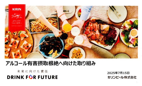 キリンビールは、酒類事業を営む企業として、アルコールの有害摂取根絶と節度ある飲酒文化の醸成による心豊かな社会の実現を目指し、2025年1月に、責任ある飲酒の促進を掲げたスローガン「DRINK FOR FUTURE -未来に向けた責任-(以下、DRINK FOR FUTURE)」を新たに策定した。
