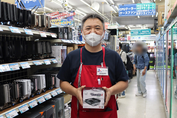 大阪・日本橋のPCパーツショップ「PCワンズ」を取材しました。店舗スタッフ・高石智基さんのオススメは、サイズのトップフロー型ロープロファイルCPUクーラー「BIG SHURIKEN4」。スリムケースやMini-ITXケース向けの定番薄型CPUクーラーの4世代目が登場です。
