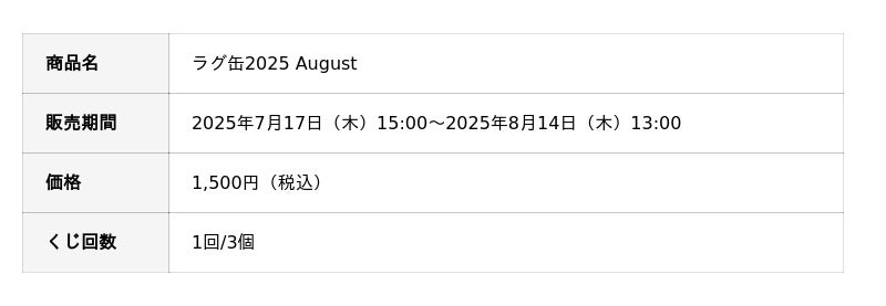 2025年7月17日(木)15:00より、「ラグ缶2025 August」の販売を開始いたします!