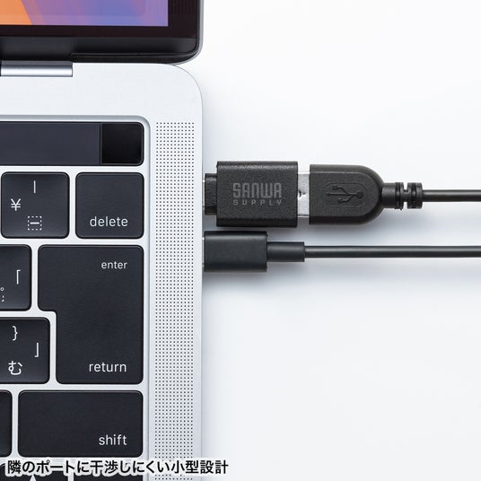 隣接ポートに干渉しにくい超小型設計で、MacBookなどの隣り合うType-Cポートにも挿すことができ、複数のデバイスを同時に接続する際も快適に使えます。