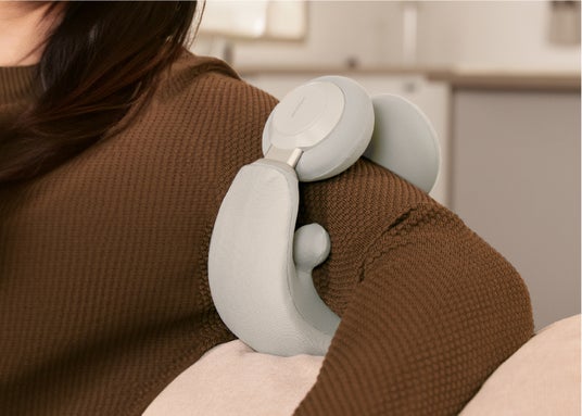 ヘッドホン形状で、首の負担を減らしながら「しっかりホールド」