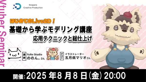 サードウェーブが運営するパソコン専門店ドスパラは、8月8日にオンラインで開催する「はじめての Live2D!基礎から学ぶモデリング講座」の最終回となる「応用テクニックと総仕上げ」の参加者を募集中だ。