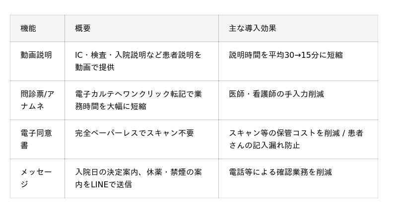 患者さんに分かりやすい説明動画を提供することで、医師が繰り返し行う定型的な説明負担を軽減しつつ、患者さんの不安や疑問を解消し、治療に対する理解度向上の両立を目指します。