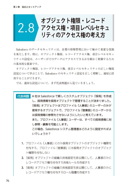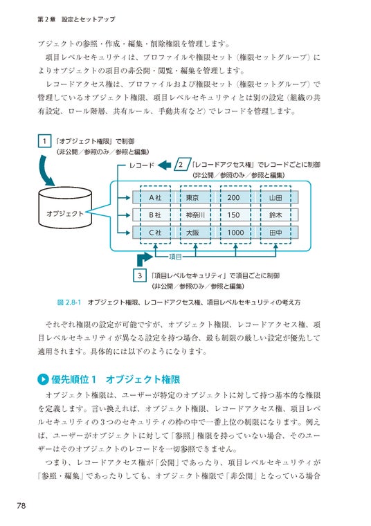 本書では、その合格に直結する力を確実に身につけられるよう、各章ごとに「代表例題 → 解説 → 例題」という3ステップで着実に理解を深めていきます。なかでも試験の合否を分けるカギとなるのが、「アクセス権・権限設定」の理解。