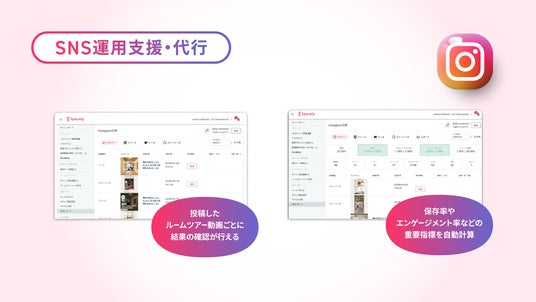 SNSによって集客アップ・問い合わせ増・認知度アップを図りたいがリソースや運用ノウハウがないという課題を抱える不動産事業者様に対してSNS運用支援・代行サービスの提供を行っています。