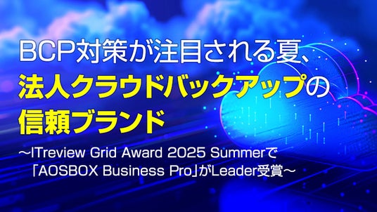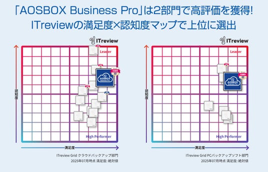 AIデータ株式会社(本社:東京都港区、代表取締役社長:佐々木隆仁)が提供する法人向けクラウドバックアップサービス「AOSBOX Business Pro」は、企業の災害対策および事業継続のニーズに応え、「ITreview Grid Award 2025 Summer」において、クラウドバックアップ部門およびPCバックアップソフト部門で「Leader」を獲得しました。