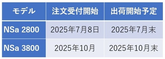 NSa 2800は2025年7月8日から日本国内での注文受付を開始し、7月末より出荷開始を予定しています。NSa 3800については10月から注文受付を開始し、10月末より順次出荷を行います。