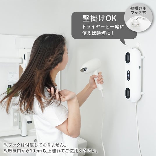 底面には壁掛け用のフック穴があり、ドライヤーと併用することで髪を一気に乾かす時短アイテムとしても活躍。