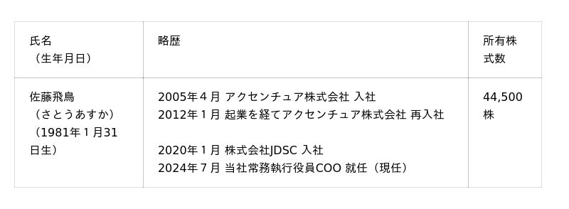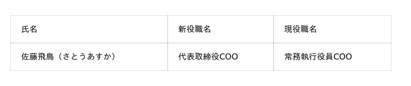 新体制において、より綿密なコミュニケーションが図れるように現代表取締役CEOである加藤聡志と現常務執行役員COOである佐藤飛鳥の両名による共同代表制とし、それぞれが得意とする事業領域により注力することで機動的な意思決定を行い、グループ全体としてのブランド価値向上や成長戦略を推進し、企業価値の向上を目指してまいります。