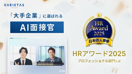 対話型AI面接「AI面接官」を開発・提供する株式会社VARIETAS(読み方:バリエタス、以下「VARIETAS」)は日本の人事部主催「HRアワード2025」(後援:厚生労働省)において、プロフェッショナル部門の入賞企業として選出されたことをお知らせします。